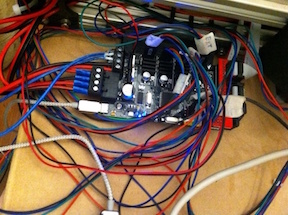 With all the wires it is hard to tell that there is more space there. After wiring up the OVM20, it took some time to upload the sketch to it. The OVM20 uses a micro USB connector, so I had to find a cable to use. I downloaded the latest version of the Arduino IDE plus the latest Marlin firmware. I made my changes to the Configuration.h file and then compiled the Marlin firmware. Once I got a clean compile, I uploaded the firmware to the OVM20.