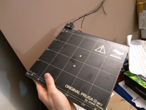 After thinking about it for a while, I won’t be using the aluminum plate and MK2b combo. I have a genuine MK42 heatbed from Prusa Research that I will use. It also works with a Pinda probe which I have. The MK42 is an aluminum plate with a built in heater. It also has a PEI sheet on top. One bad thing is that I need to rearrange the electronics since the power cable for the MK42 won’t reach where the electronics are currently located.