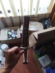 While I still intend on adding the toe clips and straps that I have on hand, the build is pretty much completed. I didn’t do a build using original components. I mixed and matched components that I thought would work well. One component that I didn’t go with, was standard drop handlebars. This was due to the negative effect that bending down while gripping them would have on my lower back. So I opted to use Wald 870 high rise handlebars which would allow me to sit fairly upright. I paired up some Dia-Compe DC188 brake levers (with matching handle grips) along side the Wald 870 handlebar. Topping that off that setup with an IRD Power Ratchet Thumb Shifter set. I included a number of Campagnolo components in the build. The front and rear brakes are Campagnolo Centaur Dual Pivot Caliper brakes. The front and rear derailleurs are Campagnolo Racing T derailleurs. Both of the wheels were built using Campagnolo hubs with Mavic CXP Pro 15mm rims. The tires are 700-28c Panarace Gravel Kings. I used Velo Orange Cable sets for the brakes and derailleurs. The saddle is a Fuji Velo which is on a generic compression seat tube. The seat tube along with a 90mm Cirrus Cycles Suspension Stem dampens the bumps a bit. The bottom bracket is an IRD QB-55 (127.5mm x 68mm) with English Threads. The crankset is a triple from a Fuji S10S (most likely from the 80s). I used a pair of MKS Sylvan Touring (Black and Silver) pedals. To finish off the bike I used a kickstand that attached to the bike using the quick release on the rear wheel. The frame, saddle, and crankset all say Fuji on them.
