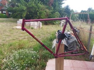 At the same time that I got the Miyata 210 frame, I purchased a Fuji Team Issue frame with a front fork. The frame and fork were carbon fiber and had been listed as being repaired. Since the seller was a bike shop with a very good rating, I crossed my fingers and hoped it would be ok. From the pictures nothing seemed to be wrong with it. And when I received it, everything was fine. This is the frame that I intend to use as the basis for a bike that I would ride in the neighborhood with my family. Here is a picture of the frame from the eBay listing and a picture of a complete 2008 model.