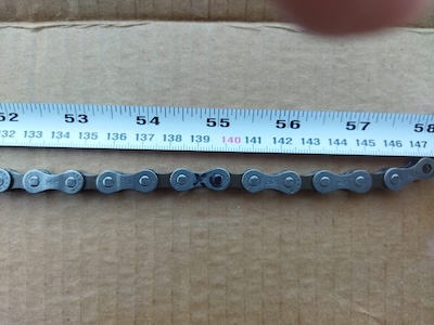 In the picture I made a mistake marking the link, I need to go over to the start of the next link. So instead of 55″ it was almost 55.5″. So 55″ and 55.5″ were still in the ballpark and very close to the measurement of 55.25″ that I calculated.