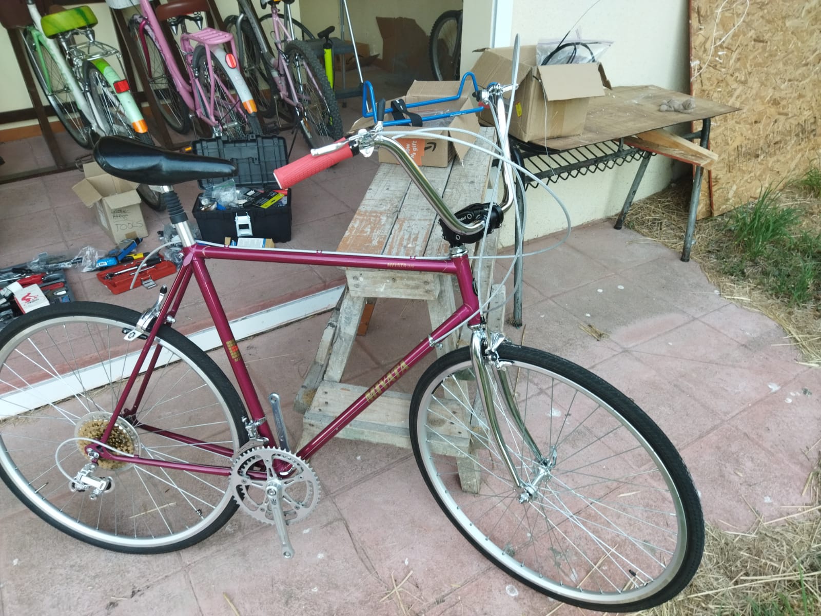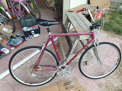 I had said that I was going to finish up the Miyata 310 build a few weeks back, but that week turned out to be really hot. And the next week as well. So I started working again on the build a few days ago. I installed the handle bars, the shifters, the brake handles, and started to size the housing for brake cables and shifter cables.