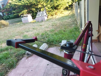 Today I finished cutting the cable housings to size. Installed the brake and derailleur cables. Here I am testing the movement of the derailleurs.