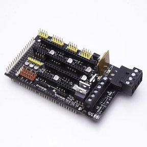 The vendor for the premium Ramps board had another product that looked interesting.  It was their OVM20 board which combined the functionality of the Ramps 1.4 board and the Arduino Mega board into one board.  They made the OVM20’s footprint the same as the Arduino Mega, which means that it can be bolted in place of an existing Ramps 1.4 + Arduino Mega.  The added benefit is that it takes up less space.  The price of the OVM20 is $37, so it is not that much more than their premium Ramps board.